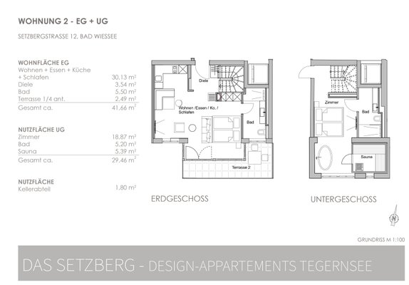 Diese Wohneinheit ist mit dem UG verbunden. Das UG weist eine Raumhöhe unter 2,40 auf und darf nach BayBO nicht als dauerhafter Wohnraum genutzt werden, d.h. es ist Nutzfläche, ausgebaut in Wohnqualität.