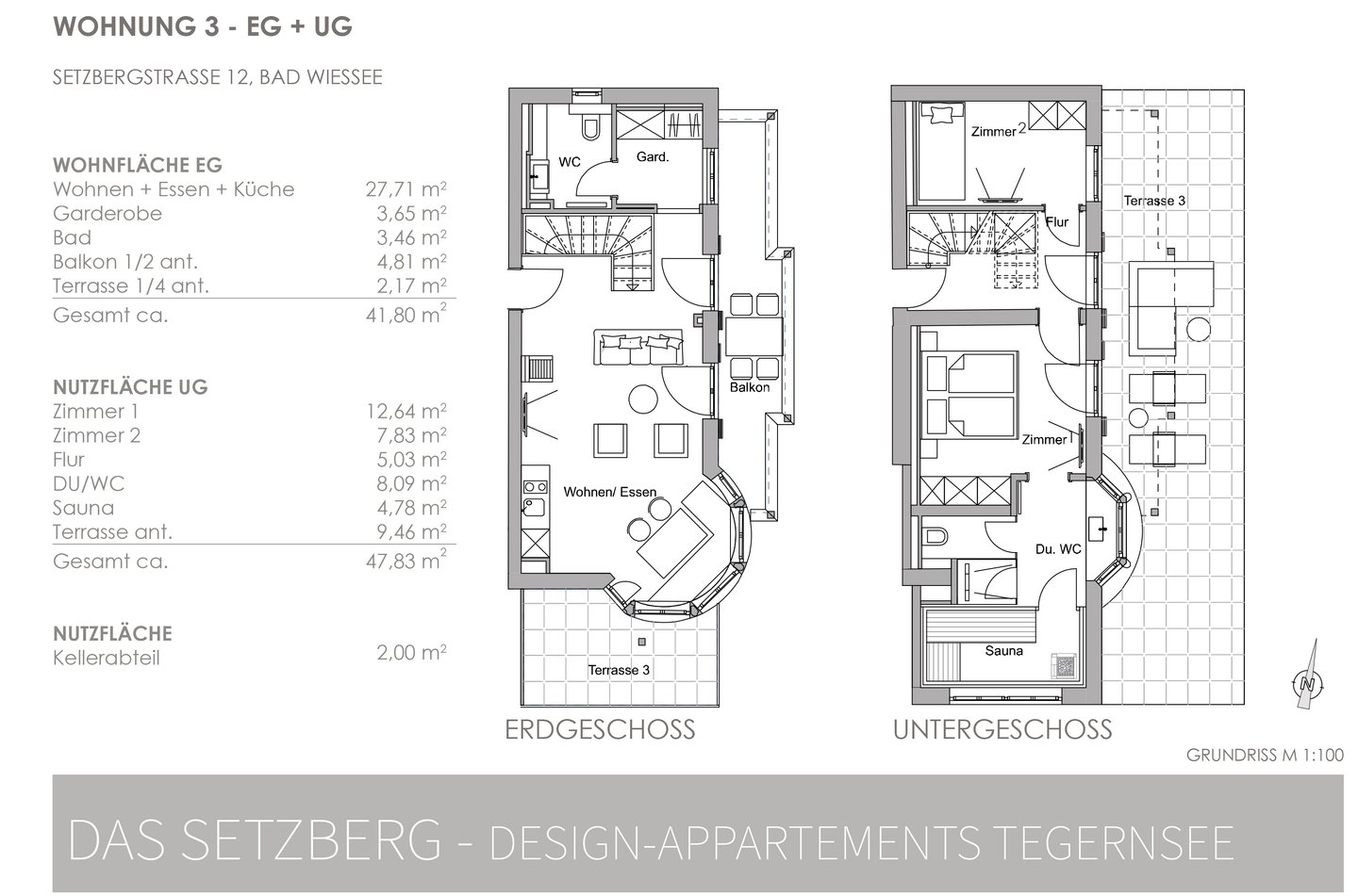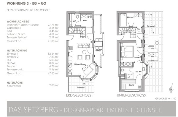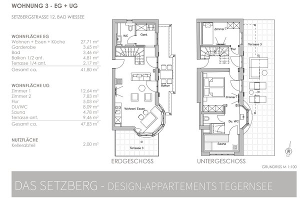 Diese Wohneinheit ist mit dem UG verbunden. Das UG weist eine Raumhöhe unter 2,40 auf und darf nach BayBO nicht als dauerhafter Wohnraum genutzt werden, d.h. es ist Nutzfläche, ausgebaut in Wohnqualität.