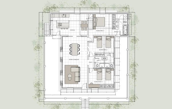Die Immobilie verfügt über eine ausgedehnte bebaute Fläche von ca. 387 m² und einen geräumigen offenen Wohn- und Essbereich mit direktem Zugang zu einer schönen Terrasse. Von dieser Terrasse aus kann man einen atemberaubenden Panoramablick auf die umliegenden Berge und die Landschaft genießen. Außerdem verfügt das Haus über eine voll ausgestattete Küche, drei großzügige Doppelzimmer mit Einbauschränken und drei Badezimmer.