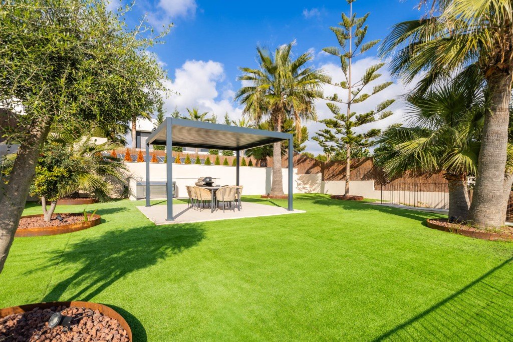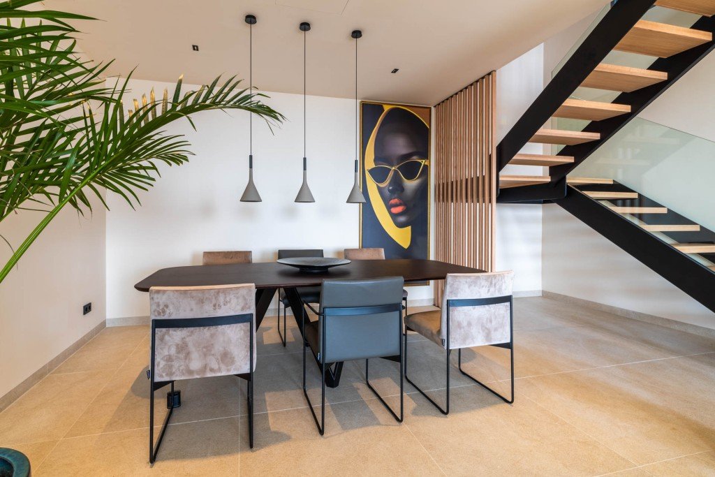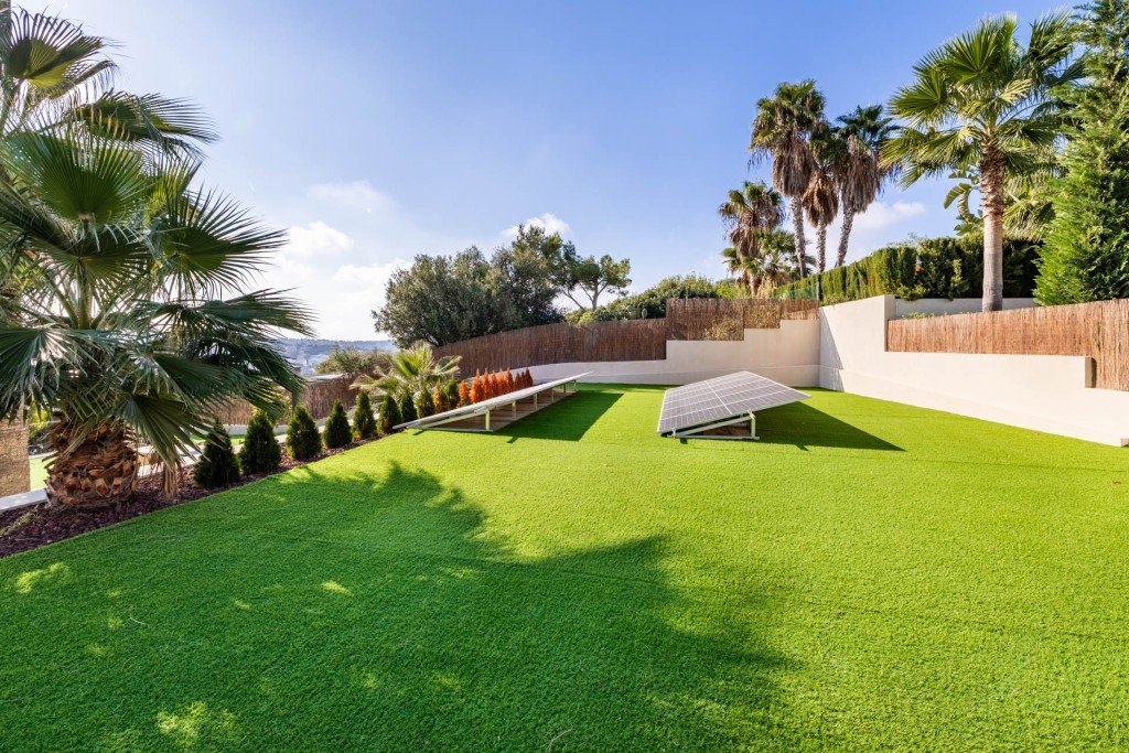 Im Außenbereich gibt es mehrere große Terrassen, darunter die Dachterrasse, die einen atemberaubenden Blick bis zum Meer bietet und sich harmonisch in den großen Garten- und Poolbereich einfügt. Hier können Sie mit Familie und Freunden wunderbar grillen.