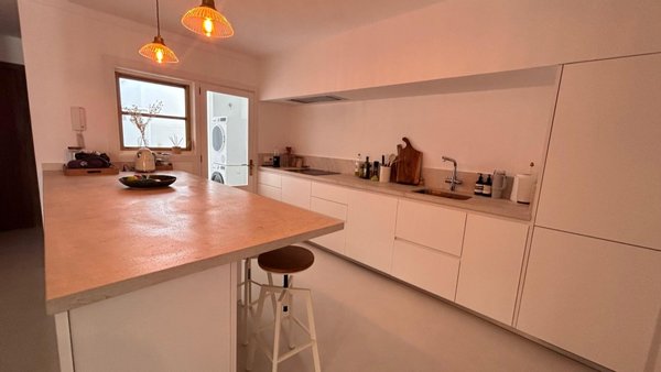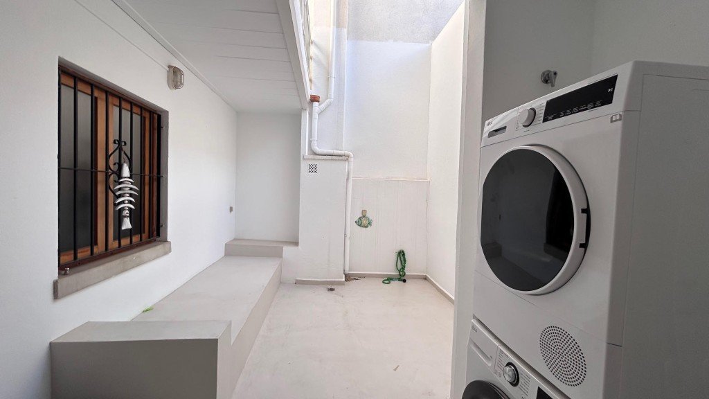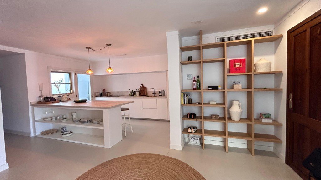 Die Wohnung ist mit Klimaanlage (kühl und heizend) in allen Räumen ausgestattet und verfügt über einen Pelletofen im Wohnzimmer für die kühleren Monate. Alle Schlafzimmer gehen nach außen und sorgen so für zusätzliches Tageslicht. Die Mikrozementböden verleihen der Wohnung einen modernen und eleganten Touch.