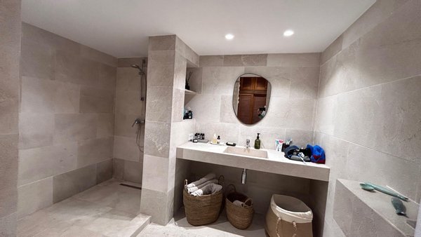 Die Wohnung ist mit Klimaanlage (kühl und heizend) in allen Räumen ausgestattet und verfügt über einen Pelletofen im Wohnzimmer für die kühleren Monate. Alle Schlafzimmer gehen nach außen und sorgen so für zusätzliches Tageslicht. Die Mikrozementböden verleihen der Wohnung einen modernen und eleganten Touch.