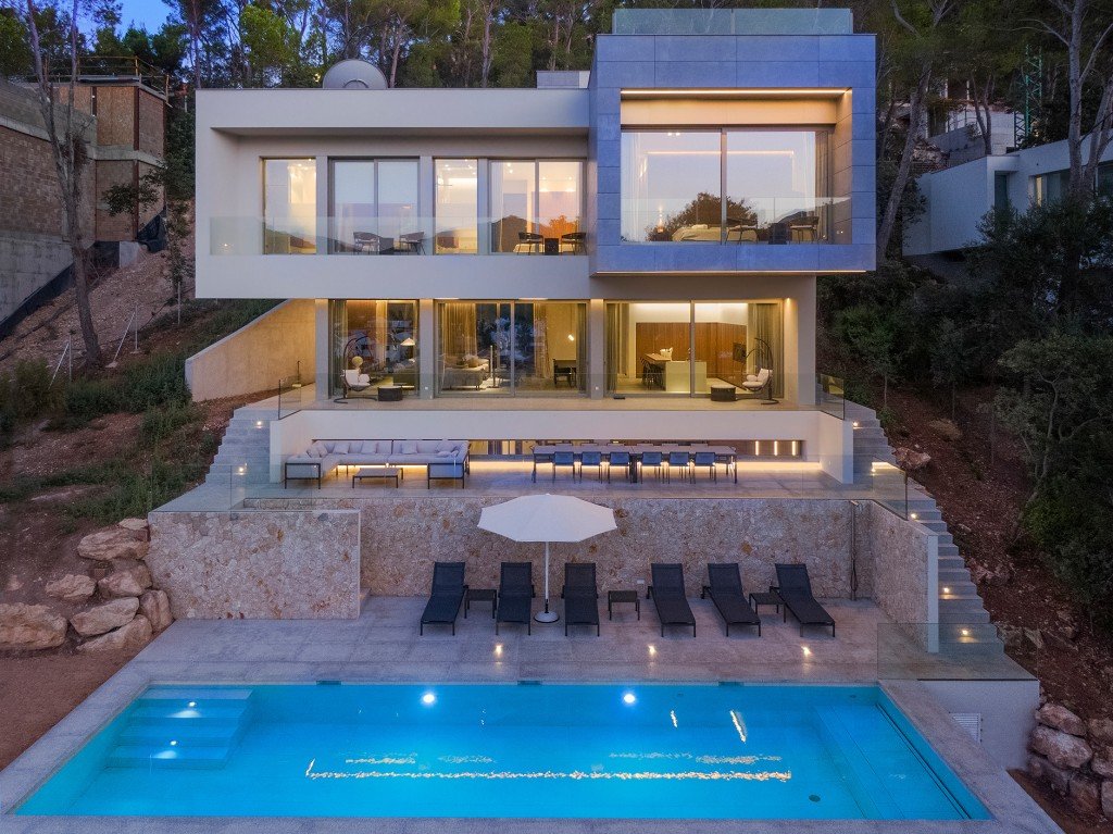 Die Villa mit einer Fläche von 583 m2 verteilt sich auf 3 Stockwerke und verfügt über 6 Doppelschlafzimmer - jedes mit eigenem Bad, einen Kinoraum, einen Fernsehraum, einen Fitnessraum mit Bad, ein Dampfbad, einen offenen Wohn-/Essbereich mit moderner Küche, einen zweiten Wohnbereich, ein Gästebad und große Terrassen, die ideal für Unterhaltungszwecke sind.