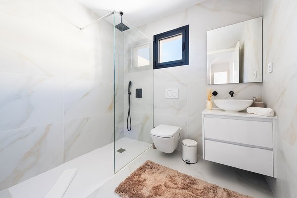 Doppelverglaste Aluminiumfenster sorgen für eine hervorragende Energieeffizienz, während Fußbodenheizung und wandmontierte Klimaanlagen das ganze Jahr über für ein angenehmes Raumklima sorgen.