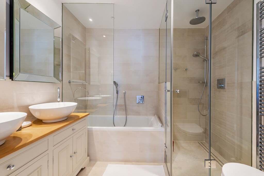 Die Wohnung ist bequem mit dem Aufzug zu erreichen.Sie bietet eine Eingangshalle, vier Doppelschlafzimmer, vier Bäder und ein großer offener Bereich mit einer modernen Einbauküche mit Insel, einem Essbereich, einem Fernsehbereich und einem Wohnzimmer mit Kamin.