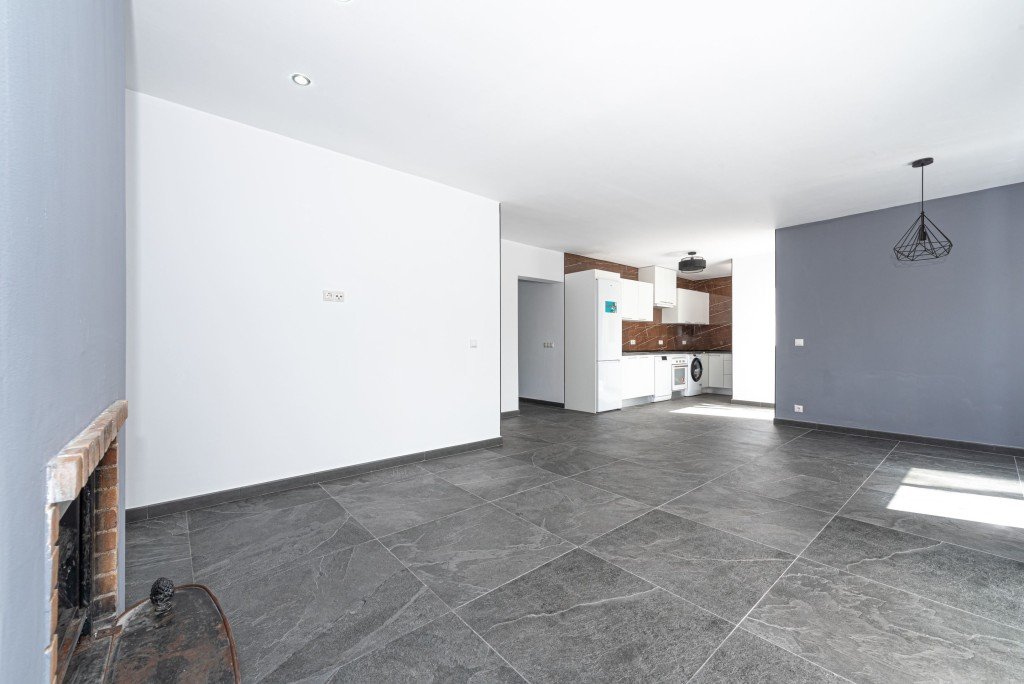 Die Wohnung ist hell und geräumig mit drei Doppelschlafzimmern, zwei Badezimmern (eines davon en suite), einem offenen Wohn-Esszimmer mit Kamin, einer Einbauküche und direktem Zugang zur großen Süd-Terrasse.