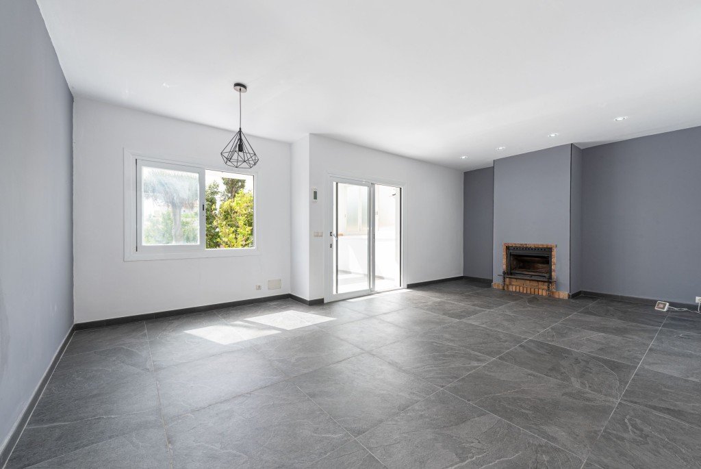 Die Wohnung ist hell und geräumig mit drei Doppelschlafzimmern, zwei Badezimmern (eines davon en suite), einem offenen Wohn-Esszimmer mit Kamin, einer Einbauküche und direktem Zugang zur großen Süd-Terrasse.