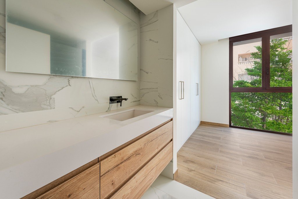 Entdecken Sie diese exklusive Neubauwohnung, die zwischen zwei der begehrtesten Stadtteile Palmas zum Verkauf steht: Santa Catalina und Son Espanyolet. Nur 10 Gehminuten vom historischen Zentrum Palmas und 5 Minuten vom Palma Sport and Tennis Club