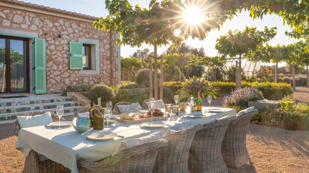 Die 2021 erbaute Finca hat eine Gesamtfläche von ca. 682 m² auf zwei Ebenen. Auf der unteren Ebene befinden sich drei stilvolle Schlafzimmer, jedes mit eigenem Bad und Zugang zu dem großen Garten und einer Terrasse. Im ersten Stock befindet sich ein geräumiger Wohn- und Essbereich, der sich durch seine hohe Decke mit Holzbalken auszeichnet.