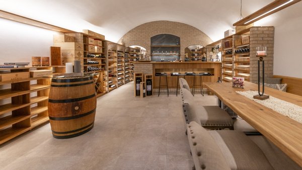Eine besondere Attraktion ist der speziell gestaltete Weinkeller, der Platz für bis zu 1.000 Weinflaschen bietet und einen gemütlichen Raum für Weinverkostungen mit Sitzgelegenheiten unter dem großen Johannisbrotbaum umfasst.