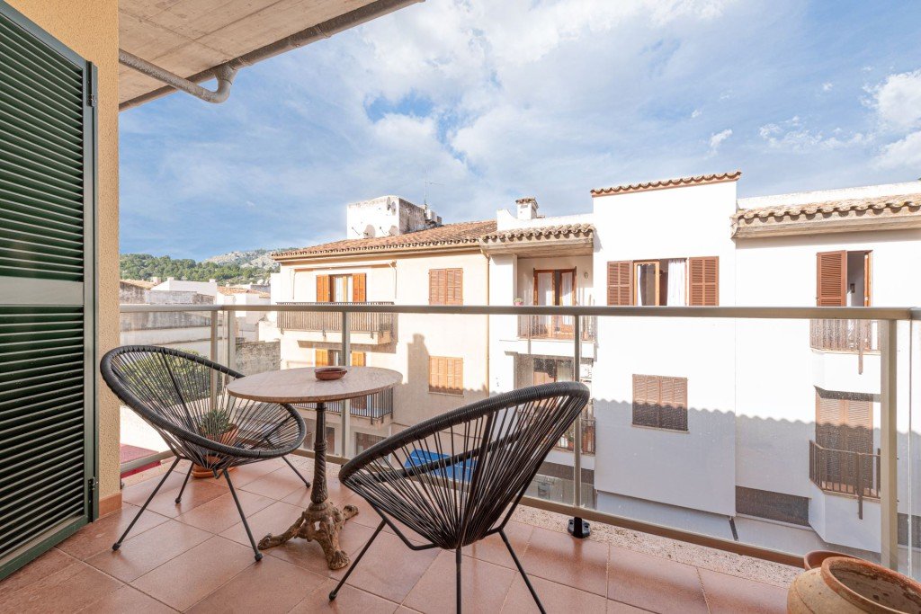 Diese moderne 3-Zimmer-Wohnung ist für die saisonale Vermietung zur Verfügung und befindet sich in einer sehr zentralen Lage in Pollensa Altstadt, nur einen Steinwurf vom Hauptmarkt und alle lokalen Annehmlichkeiten.