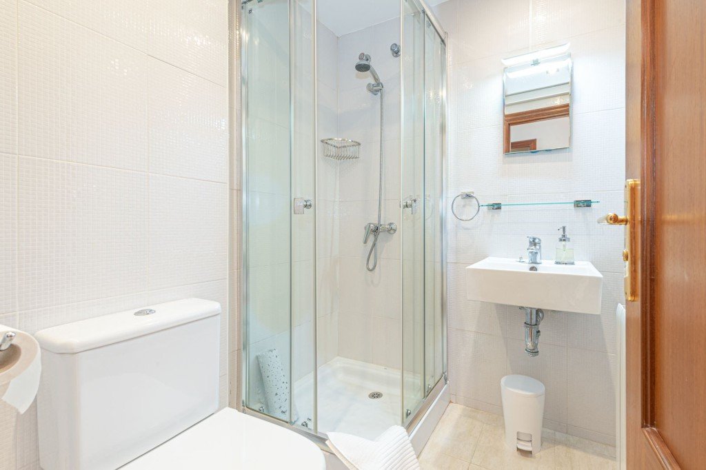 Auf der Rückseite des Wohnbereichs befinden sich insgesamt 3 Schlafzimmer (1 x Doppelzimmer, 1 x Zweibettzimmer und 1 x Einzelzimmer), alle mit Einbauschränken und Klimaanlage. Insgesamt gibt es 2 Bäder, wovon das Hauptschlafzimmer ein eigenes Bad hat und die anderen beiden Schlafzimmer sich ein weiteres teilen.