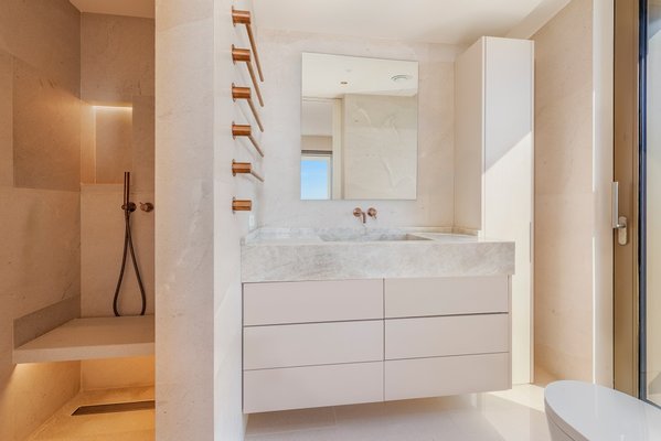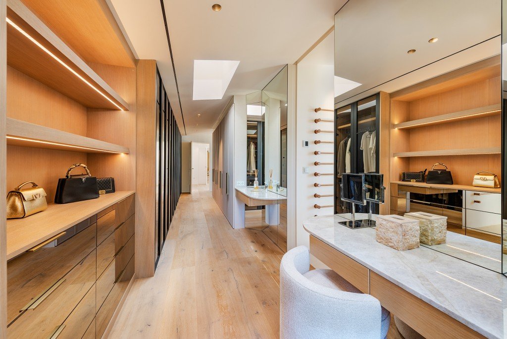 Darüber hinaus verfügt das Anwesen über eine Klimaanlage und eine Fußbodenheizung, die von einer Wärmepumpe angetrieben werden, Einbauschränke, ein Ankleidezimmer, ein Smart-Home-System, eine Garage, Stauraum, eine fantastische Aussicht und einen Aufzug, der einen bequemen Zugang zu jeder Ebene bietet.