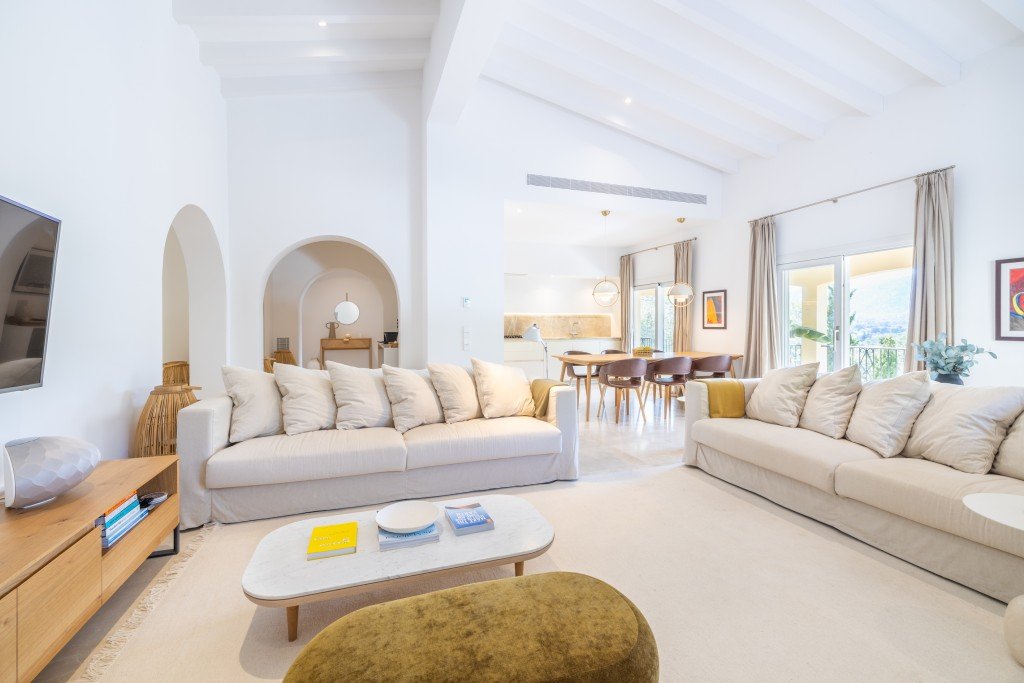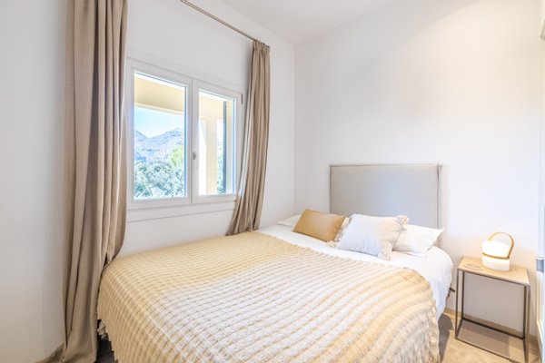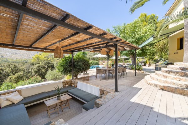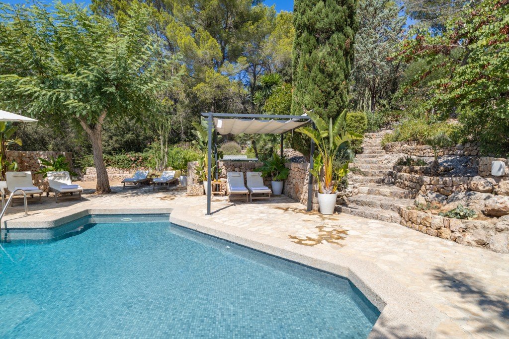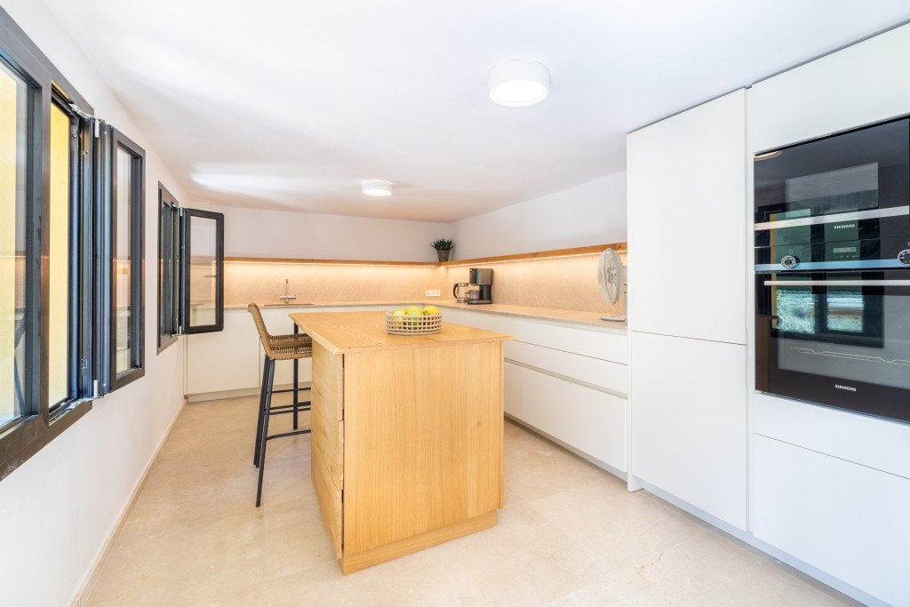 Ein besonderes Highlight ist der beheizte, in die Terrasse eingelassene Aufenthaltsraum, der sich perfekt für gemütliche Frühlings- und Herbstabende eignet. Außerdem wurde der Garten in eine großartige Yoga-Basis umgewandelt, in der Sie ruhige Morgenstunden verbringen und die Sonnenaufgänge über der Cala genießen können.