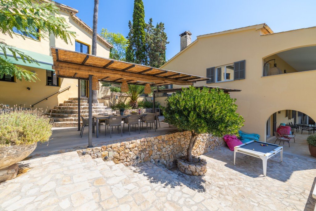 Diese große, komplett renovierte Villa mit Pool befindet sich auf einem großen Grundstück mit Zugang über eine Privatstraße. Sie liegt auf halbem Weg zwischen Pollensa und den schönen Stränden von Cala San Vicente und Puerto Pollensa. Das Anwesen