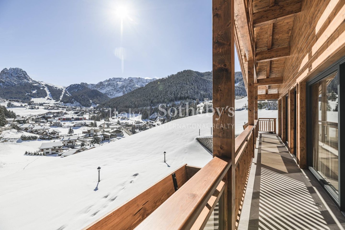 The chalet offers breathtaking views over the village and the Sella Massif beyond, not only from the living area but from each bedroom.