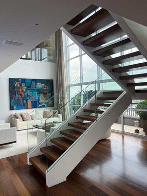 Im Obergeschoss verfügt dieses Penthouse über ein komfortables Heimkino mit Akustikbeschichtung, ausgestattet mit Soundtechnik und hochwertigem TV, sowie eine Toilette für zusätzlichen Komfort. Der private Fitnessraum verfügt über Life ...mehr lesen