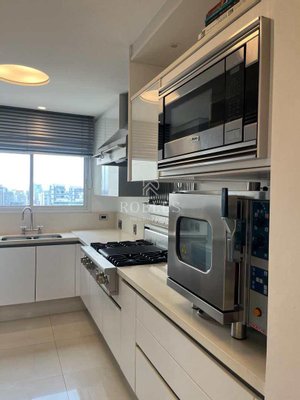 Im Obergeschoss verfügt dieses Penthouse über ein komfortables Heimkino mit Akustikbeschichtung, ausgestattet mit Soundtechnik und hochwertigem TV, sowie eine Toilette für zusätzlichen Komfort. Der private Fitnessraum verfügt über Life Fitness-Geräte, die einen idealen Raum für Übungen bieten. Der Gourmet-Bereich ist ein Highlight, mit Grill, Bierkühler, Pizzaofen und einem vertikalen Garten mit automatischer Bewässerung und privilegierter Aussicht.