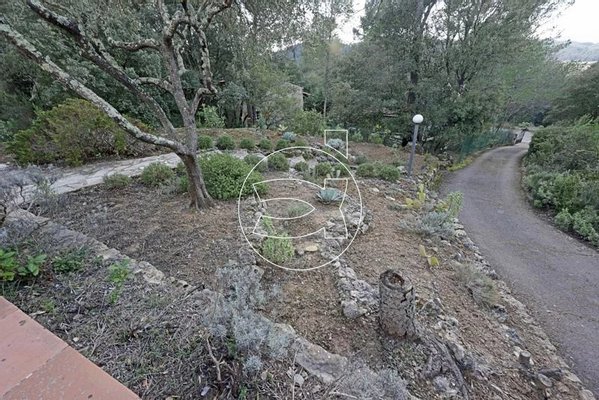Das 2156 m² große Grundstück ist vollständig eingezäunt, wunderschön angelegt und umfasst eine Vielzahl mediterraner Pflanzen und Bäume. Ein Pool und ein Pétanque-Platz runden das Angebot ab.