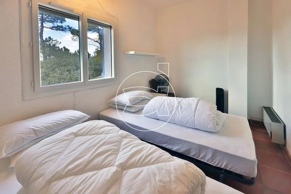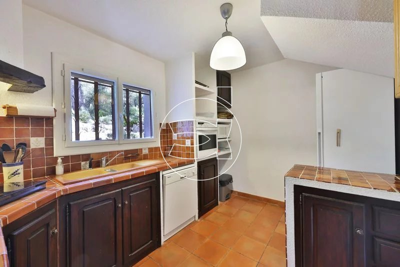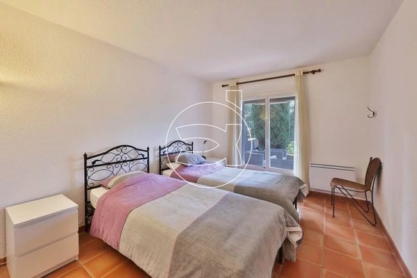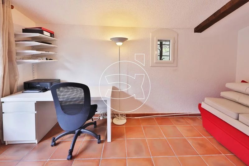 Mit einer Wohnfläche von 120 m², verteilt auf zwei Ebenen, umfasst die Villa eine Eingangshalle, die zu einem lichtdurchfluteten Wohnzimmer/Esszimmer mit Kamin und Zugang zu einer Terrasse führt, eine ausgestattete Küche, ein Hauptschlafzimmer mit Ankleidezimmer, ein Duschbad mit separatem WC, einen Hauswirtschaftsraum, einen Abstellraum sowie ein Büro/Schlafzimmer.