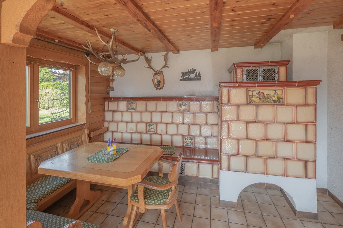 Ein Kachelofen für gemütliche Winterabende und eine Solaranlage, die umweltfreundliche Energie nutzt, sind ebenfalls vorhanden.