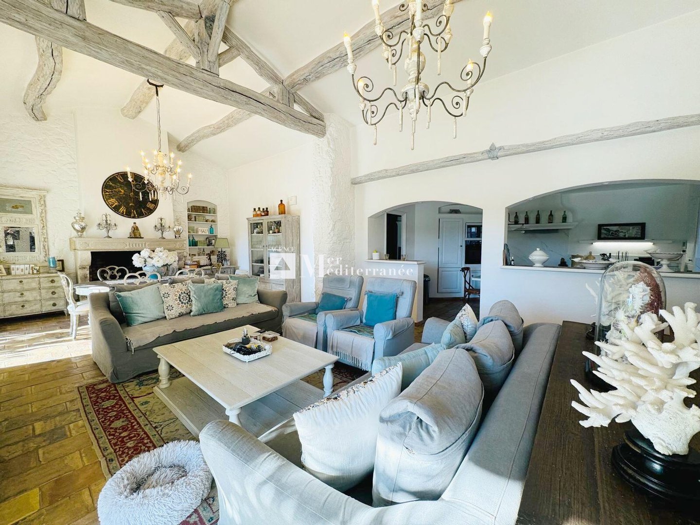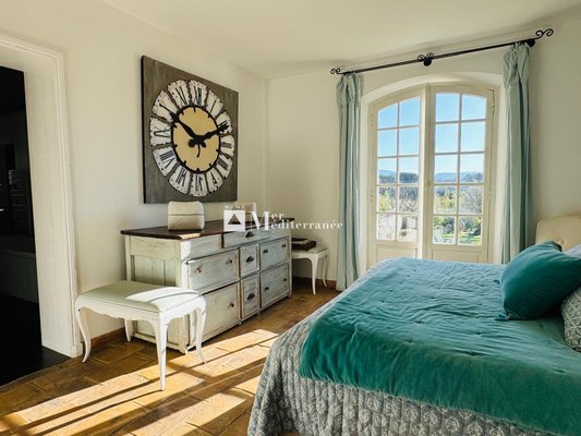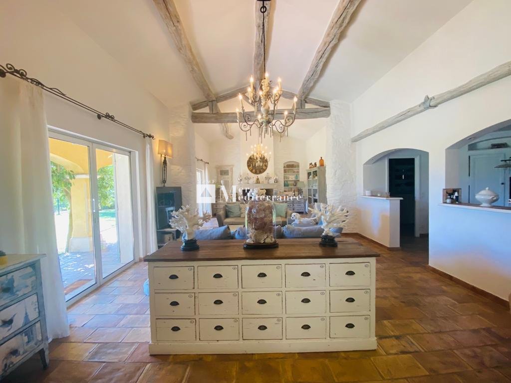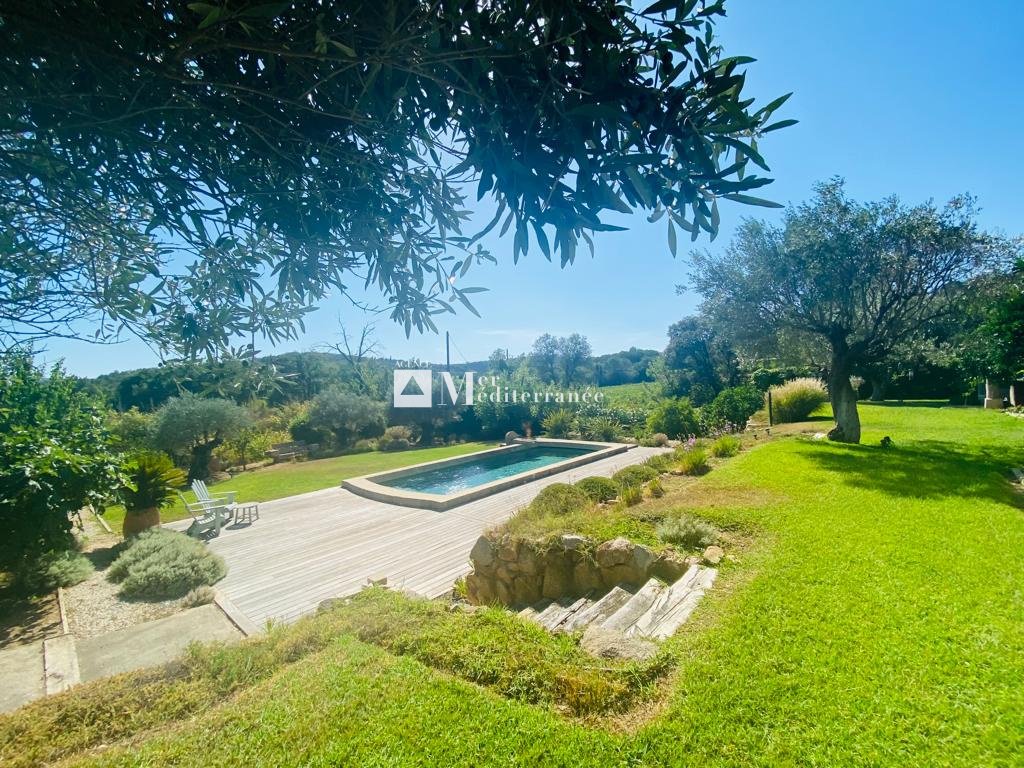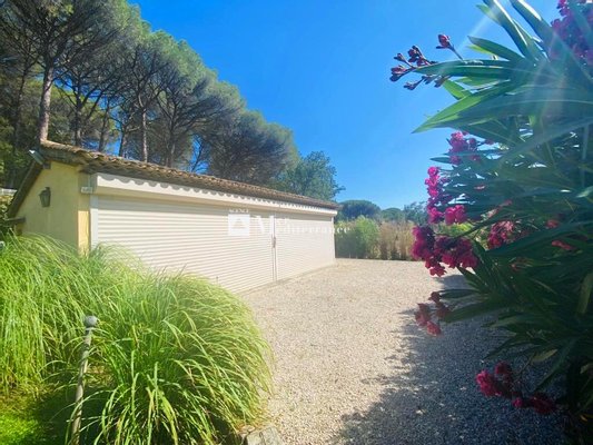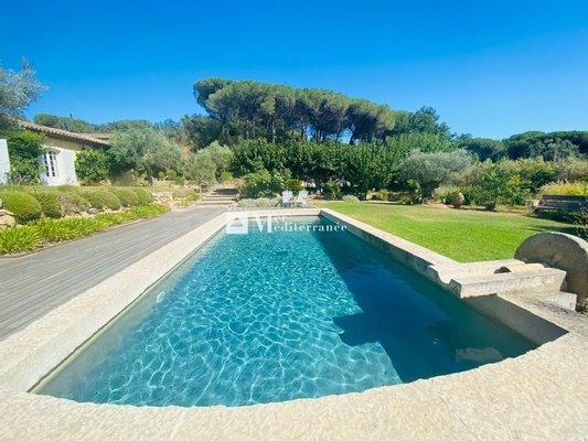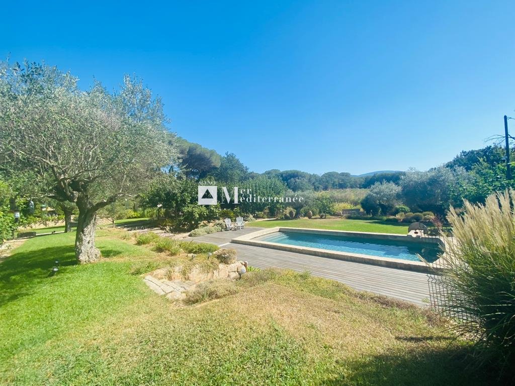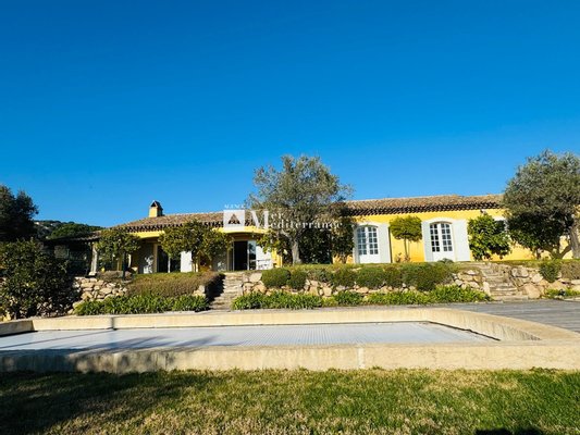 Wunderschönes provenzalisches einstöckiges Anwesen von ca. 160 m2, voller Charme im Herzen der Weinberge mit Blick auf das Schloss, in absoluter Ruhe in der Nähe des historischen Dorfes Grimaud. Genießen Sie den großen Innenraum, der sich auf einem bewaldeten Grundstück von 2.800 m2 befindet und aus einem Eingang, einem geräumigen Wohn-/Esszimmer mit Kamin unter hübschen Sichtbalken besteht, das hohe Decken bietet, die auf eine überdachte Terrasse mit Grill führen, eine große offene Küche, die komplett mit Waschküche ausgestattet ist und direkten Zugang zur Garage bietet, Drei Schlafzimmer, von denen eines ein Master-Bad mit eigenem Bad, ein Badezimmer und eine separate Toilette ist. Sie profitieren von vielen Abstellschränken, Klimaanlage ist in allen Räumen mit Fußbodenheizung vorhanden. Draußen befindet sich ein beheizter Pool von 9 m x 4 m, der einen schönen freien Blick auf die Weinberge und das Schloss von Grimaud bietet. Ein Abstellraum und zwei umwandelbare Doppelgaragen vervollständigen dieses Haus.