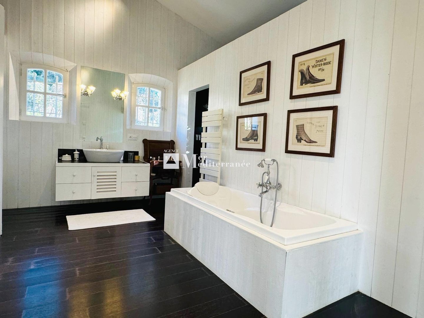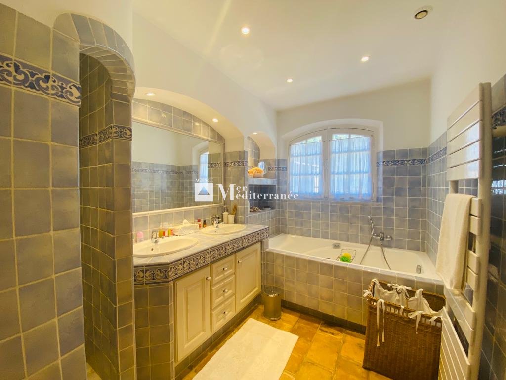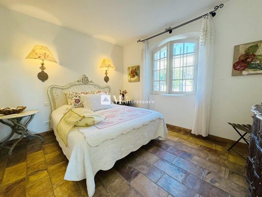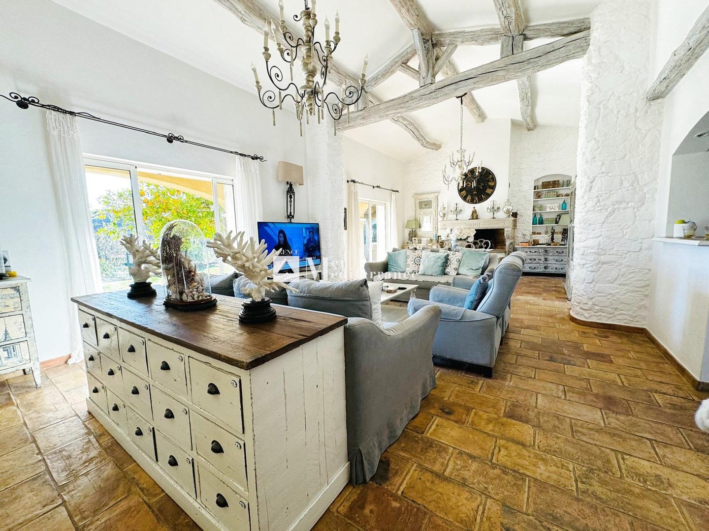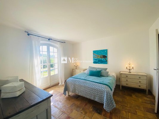 Wunderschönes provenzalisches einstöckiges Anwesen von ca. 160 m2, voller Charme im Herzen der Weinberge mit Blick auf das Schloss, in absoluter Ruhe in der Nähe des historischen Dorfes Grimaud. Genießen Sie den großen Innenraum, der sich auf einem bewaldeten Grundstück von 2.800 m2 befindet und aus einem Eingang, einem geräumigen Wohn-/Esszimmer mit Kamin unter hübschen Sichtbalken besteht, das hohe Decken bietet, die auf eine überdachte Terrasse mit Grill führen, eine große offene Küche, die komplett mit Waschküche ausgestattet ist und direkten Zugang zur Garage bietet, Drei Schlafzimmer, von denen eines ein Master-Bad mit eigenem Bad, ein Badezimmer und eine separate Toilette ist. Sie profitieren von vielen Abstellschränken, Klimaanlage ist in allen Räumen mit Fußbodenheizung vorhanden. Draußen befindet sich ein beheizter Pool von 9 m x 4 m, der einen schönen freien Blick auf die Weinberge und das Schloss von Grimaud bietet. Ein Abstellraum und zwei umwandelbare Doppelgaragen vervollständigen dieses Haus.