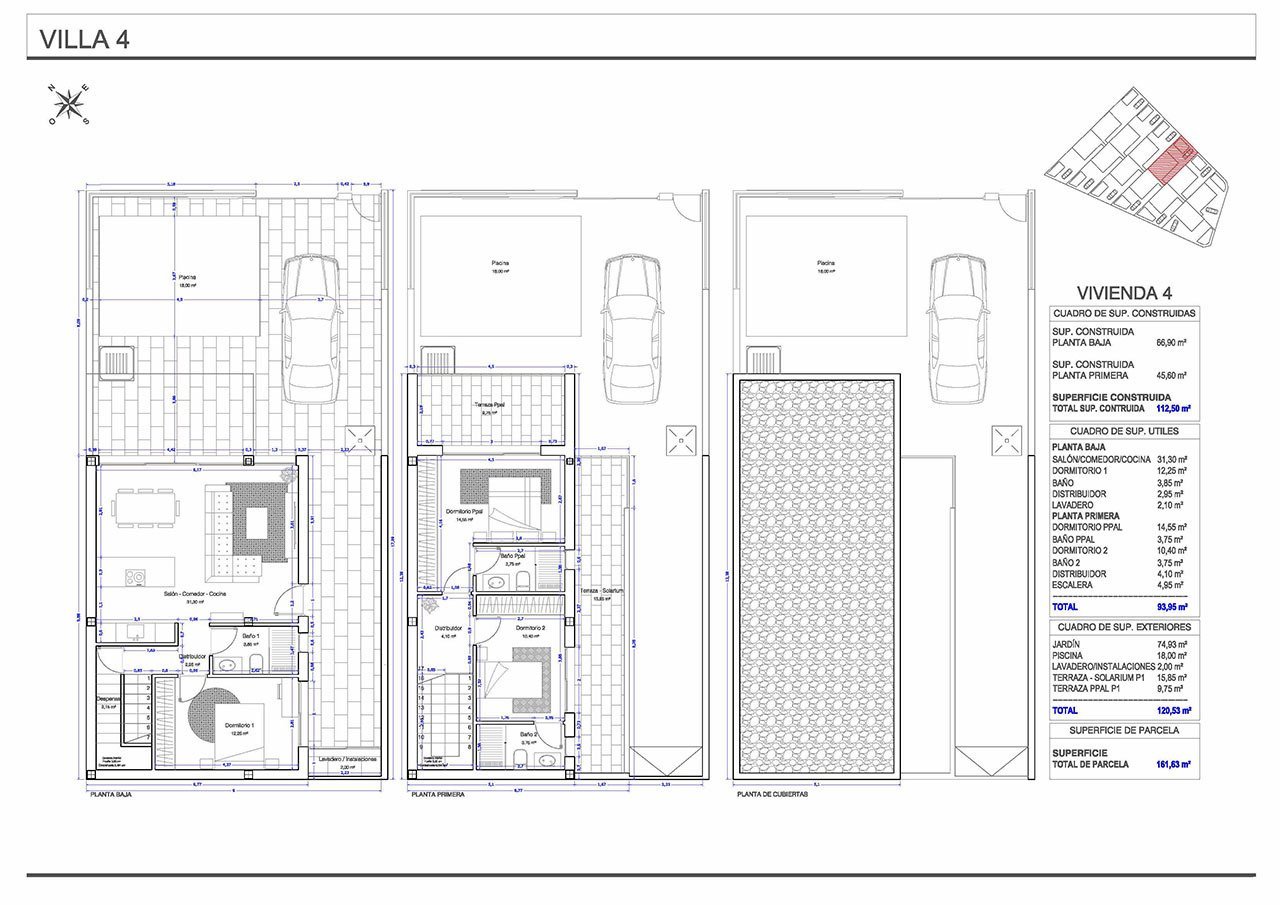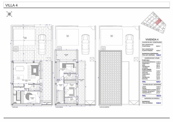 Diese modernen Villen verfügen über eine konstruierte Fläche von ca. 138 m² (inklusive Terrassen) mit