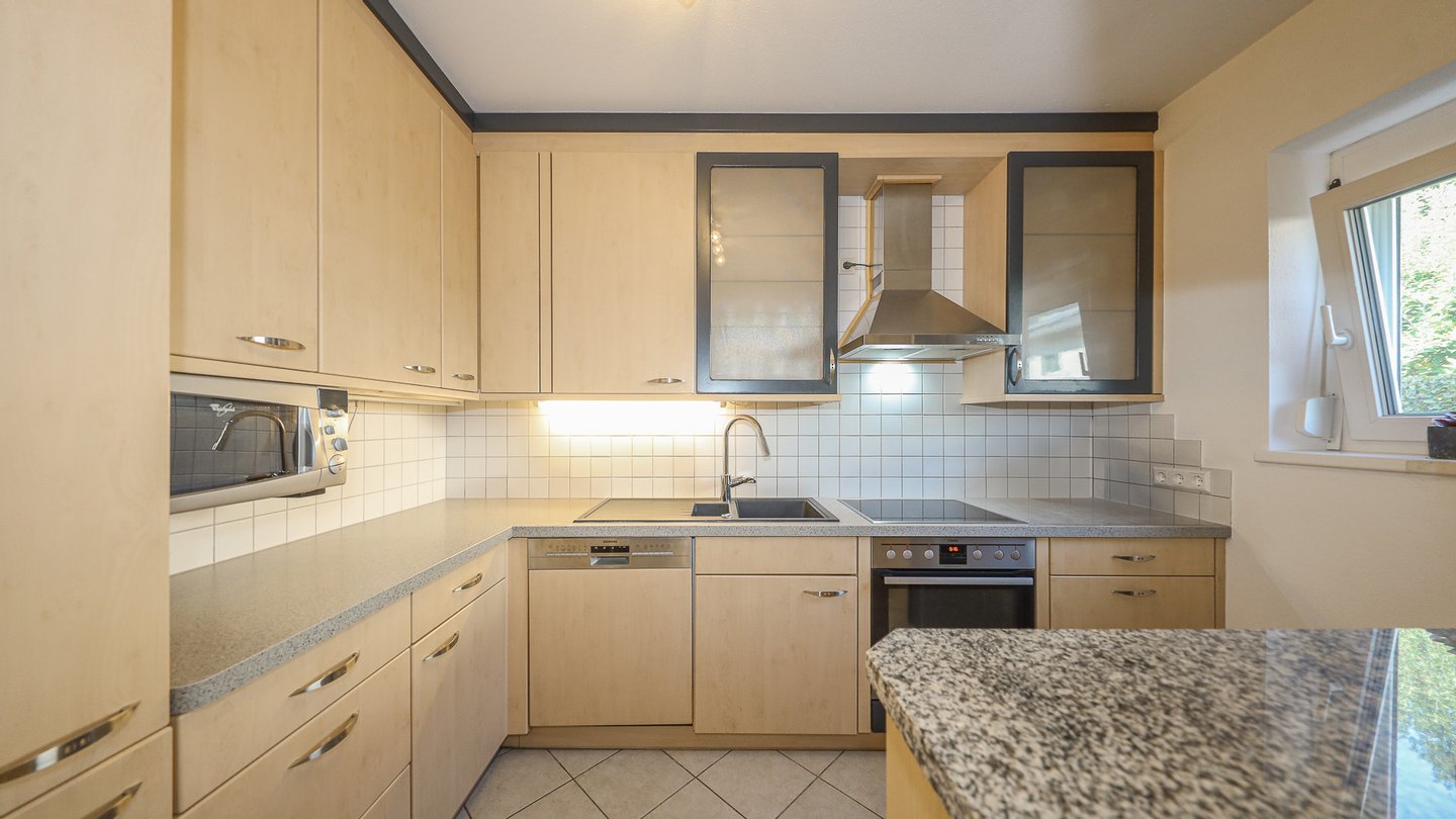 Die komplett eingerichtete und ausgestattete Küche ist von der Diele zugänglich.