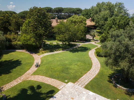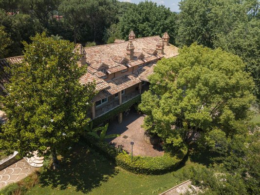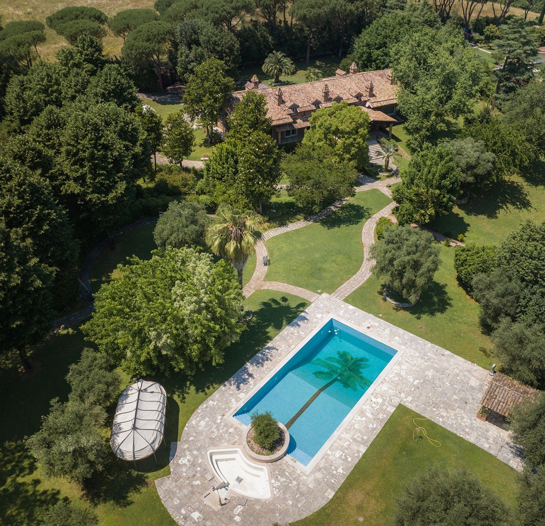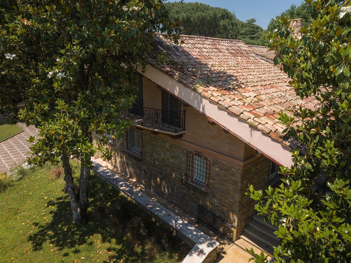 Auf einem Hügel, der das Naturschauspiel des Vejo-Parks umarmt, und nur eine kurze Autofahrt vom pulsierenden Herzen Roms entfernt, befindet sich ein Anwesen, das Luxus und Komfort verkörpert. Diese prestigeträchtige Villa befindet sich auf einem 3,7 Hektar großen, üppigen Grundstück mit Ziergärten und Rasenflächen, die im englischen Stil gepflegt sind, und ist das Juwel einer renommierten Gegend.