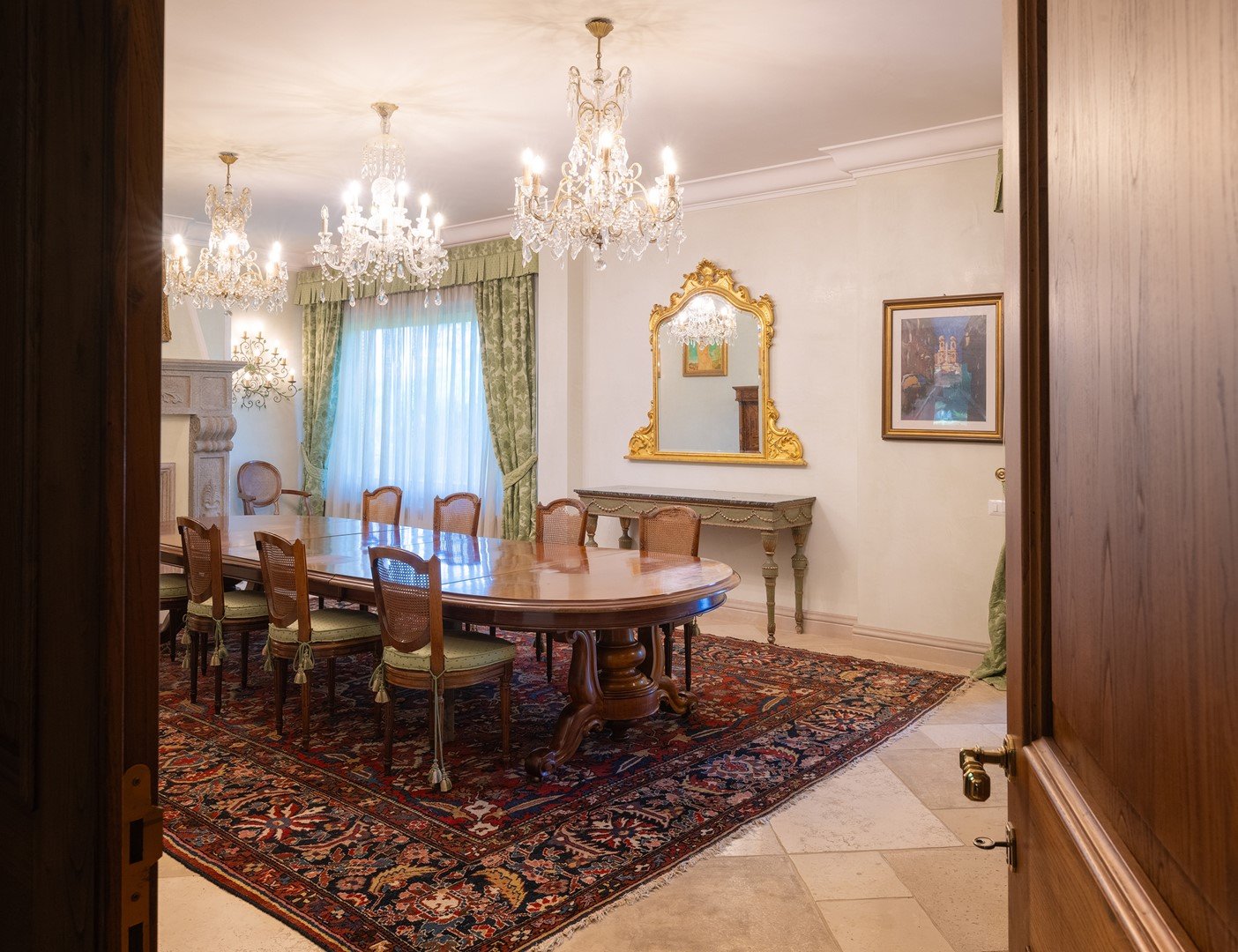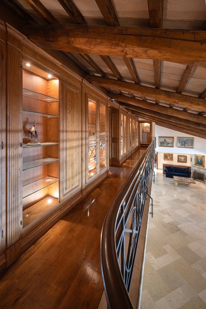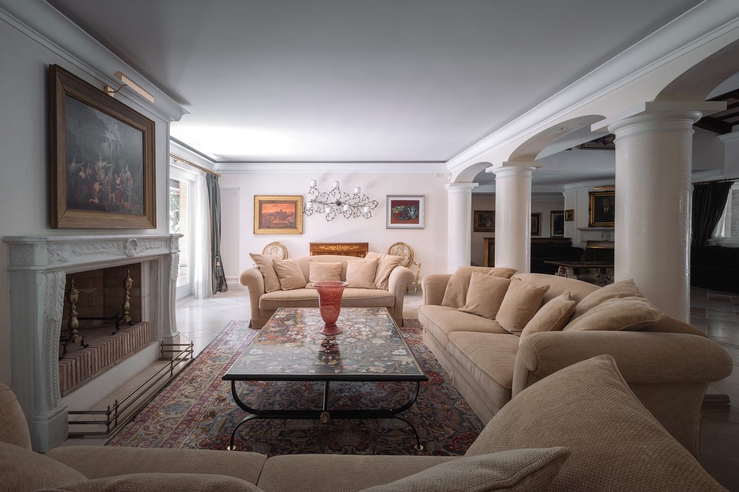 Die 1400 m² große Villa, die sich über drei Ebenen erstreckt, verkörpert eine moderne Ästhetik in einem eleganten Gebäude im klassischen Stil. Im Erdgeschoss befinden sich eine imposante Eingangshalle, ein großes Wohnzimmer mit Doppelkamin, ein Esszimmer mit Blick auf eine Veranda, eine geräumige Küche, ein Arbeitszimmer mit Sekretariat und zwei Badezimmer. Eine majestätische Treppe führt in den ersten Stock, wo vier Schlafzimmer, alle mit eigenem Bad, und eine Master-Suite mit begehbarem Kleiderschrank, Arbeitszimmer und ein Badezimmer mit Whirlpool exklusiven Komfort und Sicherheit bieten, auch dieses Zimmer ist durch eine gepanzerte Tür geschützt.