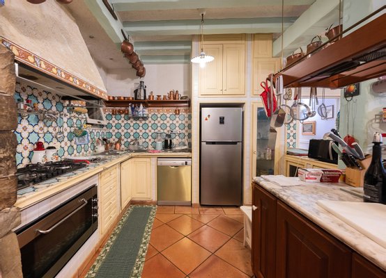 Das Anwesen bietet auch einen geräumigen Keller, einen Stall mit vier Pferdeboxen und drei separate Wohnungen, bestehend aus: Schlafzimmer, Küche und Bad. (Cod. 1964)
