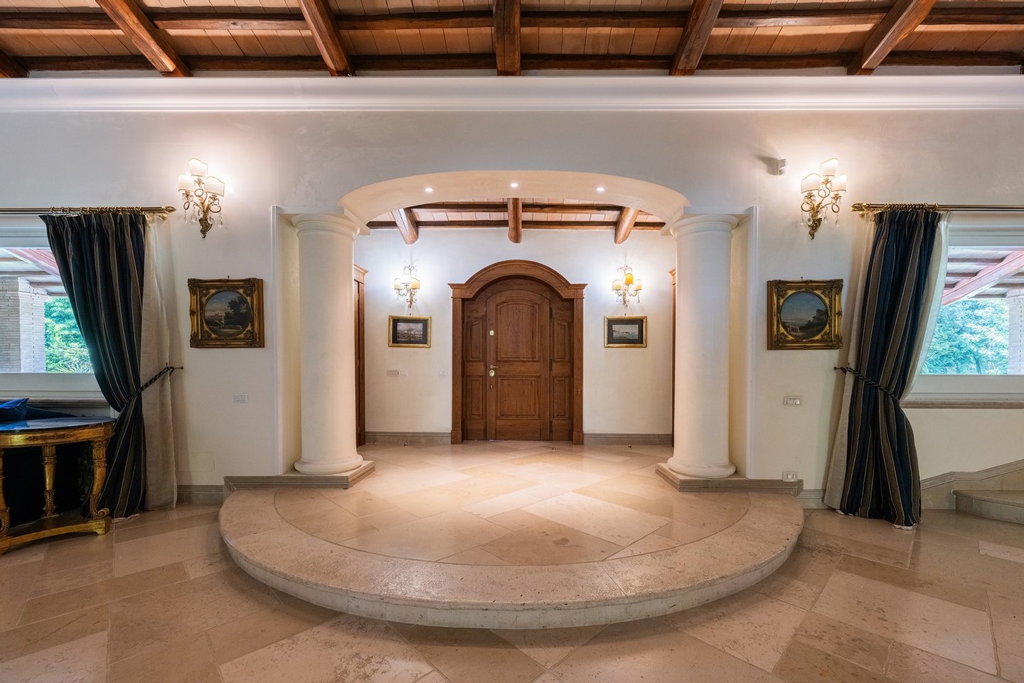 Auf einem Hügel, der das Naturschauspiel des Vejo-Parks umarmt, und nur eine kurze Autofahrt vom pulsierenden Herzen Roms entfernt, befindet sich ein Anwesen, das Luxus und Komfort verkörpert. Diese prestigeträchtige Villa befindet sich auf einem 3,7