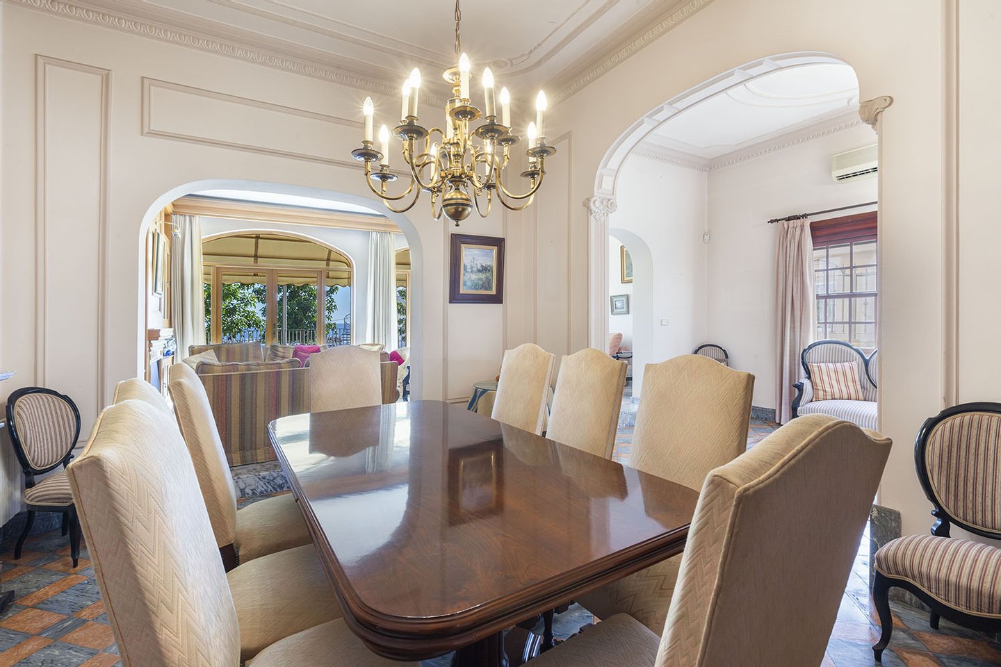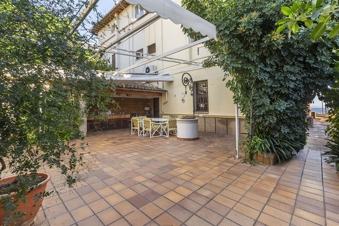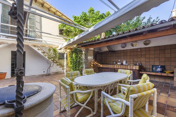 Nur wenige Autominuten vom Stadtzentrum entfernt, im Vorort San Agustin, befindet sich dieses großzügige mediterrane Haus mit herrlichem Meer- und Panoramablick. Strände und kleine Buchten, der Club Náutico Cala Nova, der Golfplatz von Bendinat sowie Einkaufsmöglichkeiten jeglicher Art, Bars und Restaurants sind zu Fuß bzw. in wenigen Autominuten zu erreichen. Die dreigeschossige Immobilie mit Dachterrasse verfügt über einen schönen Patio im Eingangsbereich, eine große Garage, mehrere Terrassenbereiche mit BBQ sowie ein Nebengebäude mit mehreren Zimmern. Zum Haus gehören außerdem unterhalb des Erdgeschosses zwei Ladenlokale mit jeweils ca. 60 m² auf Straßenebene, die vermietet sind. Das Objekt könnte nach Wunsch zu drei eigenständigen Einheiten umgewandelt werden.