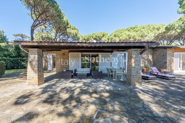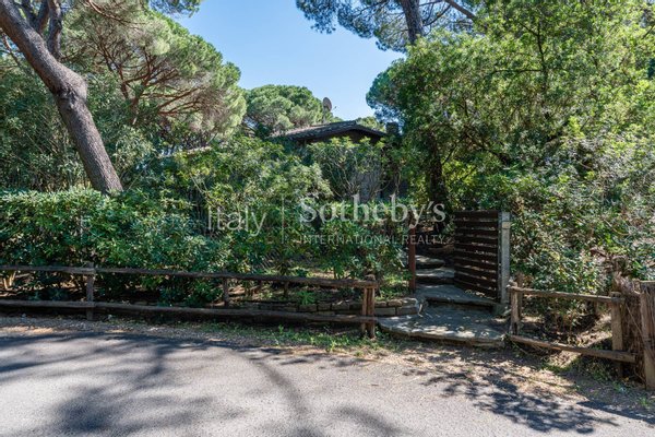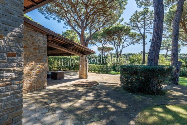 Im Herzen des prestigeträchtigen Wohngebiets und des üppigen Pinienwaldes von Roccamare befindet sich diese bezaubernde Villa von 270 m², umgeben von einem privaten Park von 5200 m². Ei