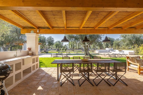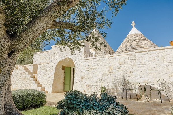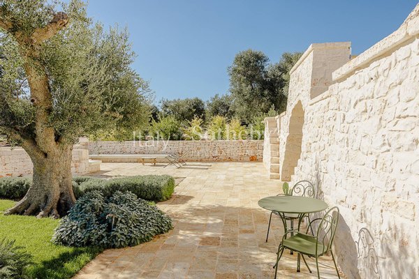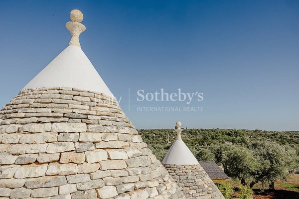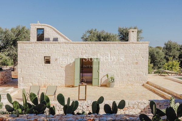 Faszinierendes Anwesen auf einem Hügel mit vier Hektar Olivenbäumen, Obstbäumen und mediterraner Flora, bestehend aus drei sorgfältig restaurierten Gebäuden, die modernen Komfort bieten und gleichzeitig die Tradition des Valle d'Itria respektieren.