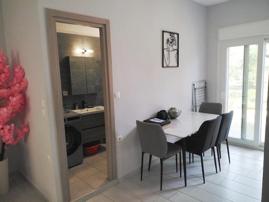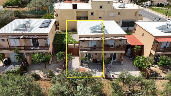 Diese kleine Doppelhaushälfte ist Teil einer kleinen Anlage (vier Häuser - acht Doppelhaushälften) und befindet sich fußläufig keine 10 Minuten (ca. 600 Meter) vom Strand entfernt. Sie liegt an der Durchfahrtsstraße der wachsenden Ortschaft Pirgos Psilonerou an der Nordküste Kretas - zwischen Maleme und Gerani.