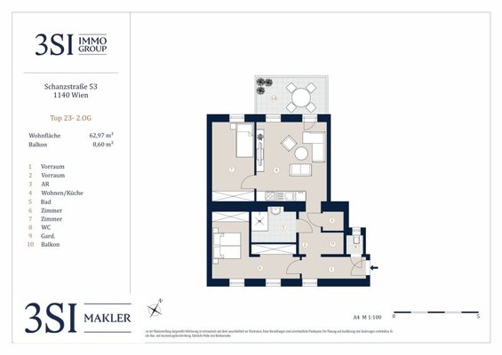 Der guten Ordnung halber halten wir fest, dass, sofern im Angebot nicht anders vermerkt, bei erfolgreichem Abschlussfall eine Provision anfällt, die den in der Immobilienmaklerverordnung BGBI. 262 und 297/1996 festgelegten Sätzen entspricht – das sind 3 % des Kaufpreises zzgl. 20 % USt. Diese Provisionspflicht besteht auch dann, wenn Sie die Ihnen überlassenen Informationen an Dritte weitergeben. Letztlich weisen wir darauf hin, dass wir als Doppelmakler tätig sind und ein familiäres/wirtschaftliches Naheverhältnis zwischen der 3SI Makler GmbH und der Verkäuferin besteht.