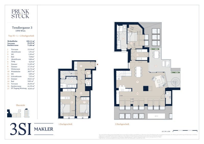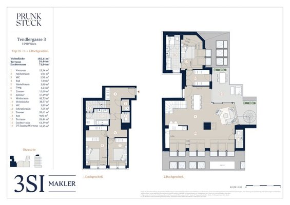 Perfekt geschnittener 4-Zimmer Dachgeschosswohnung mit knapp 182,11 m² Wohnfläche, 26,44 m² Terrasse und 71,84 m² Dachterrasse: