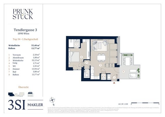Perfekt geschnittener 2-Zimmer Dachgeschosswohnung mit knapp 55,52 m² Wohnfläche und 13,77 m² Balkon: