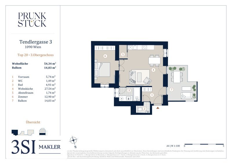 Der einladende Vorraum (ca. 5,74 m²) bildet das Herzstück der Wohnung und führt in alle Wohnbereiche. Das separate WC sowie das geschmackvoll ausgestattete Badezimmer (ca. 4,93 m²) bieten angenehmen Komfort im Alltag. Ein praktischer Abstellraum schafft zusätzlichen Stauraum.