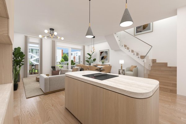 Hier verschmelzen Wohnkomfort und Funktionalität zu einem Meisterwerk. ein beeindruckend großer Raum für Wohnen-Kochen-Essen im Herzen der Wohnung lädt zu Wohnen wie im Urlaub ein, voll Lebenslust und als Ausdruck mediterraner Lebensart. Lassen Sie sich gefangen nehmen von der Stimmung in der Nähe des Sees. Großzügige Außenterrassen erweitern den Wohnbereich, der Eingangsbereich, die Garderobe, ein Bad mit WC, ein Wirtschaftsraum sind die optimale Ergänzung in dieser Ebene. Zwei oder drei Schlafzimmer nach Wahl in der oberen Wohnebene, die Sie über die Innentreppe erreichen, ein stilvolles Badezimmer, eine Galerie und ein Balkon bieten Raum für Familie, Freunde oder einfach für Ihr persönliches Hideaway. Hochwertige natürliche Materialien, Dielenböden und große Panoramafenster schaffen eine Atmosphäre voll Harmonie.