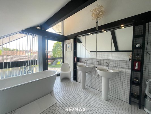 Das Haus, erbaut im Jahr 2001, erstreckt sich über drei Etagen und bietet eine Wohnfläche von circa 176 m². Im Erdgeschoß befinden sich ein einladendes Foyer, ein großzügiger Wohn- und Essbereich, ein moderner Kochbereich mit Zugang zur Speisekammer sowie eine Toilette. Das Dachgeschoß beherbergt eine helle Galerie, ein Schlafzimmer, ein Zimmer mit Lese- und Relaxbereich sowie ein stilvolles Bad mit freistehender Badewanne und einem idyllischen Ausblick ins Grüne.