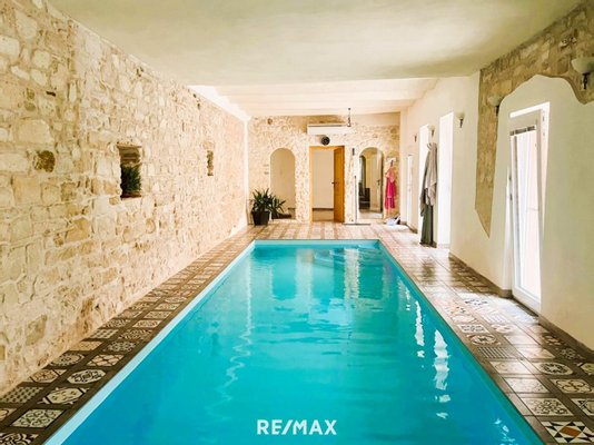 Der mediterran gestaltete Gutshof umfasst ein großzügiges Wohnhaus sowie ein separates Gästehaus auf einer beeindruckenden Wohnfläche von insgesamt 330 m². Die 9 hellen Zimmer, darunter 6 Schlafzimmer und 3 elegante Bäder, bieten Platz für die ganze Familie und Gäste.