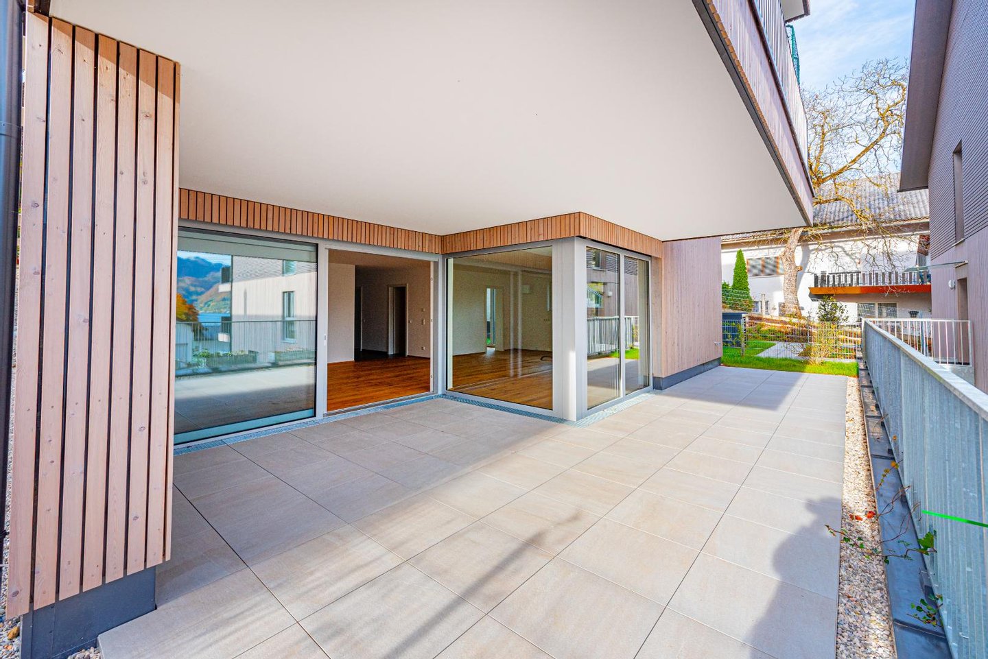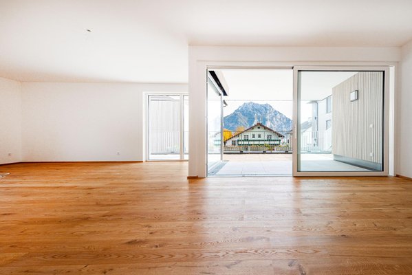 Terrasse mit Weitblick: Genießen Sie die frische Luft auf Ihrer 34 m² großen Terrasse und ca. 97 m² großen Garten, mit Blick auf den Traunsee und die umliegende Gebirgskulisse.