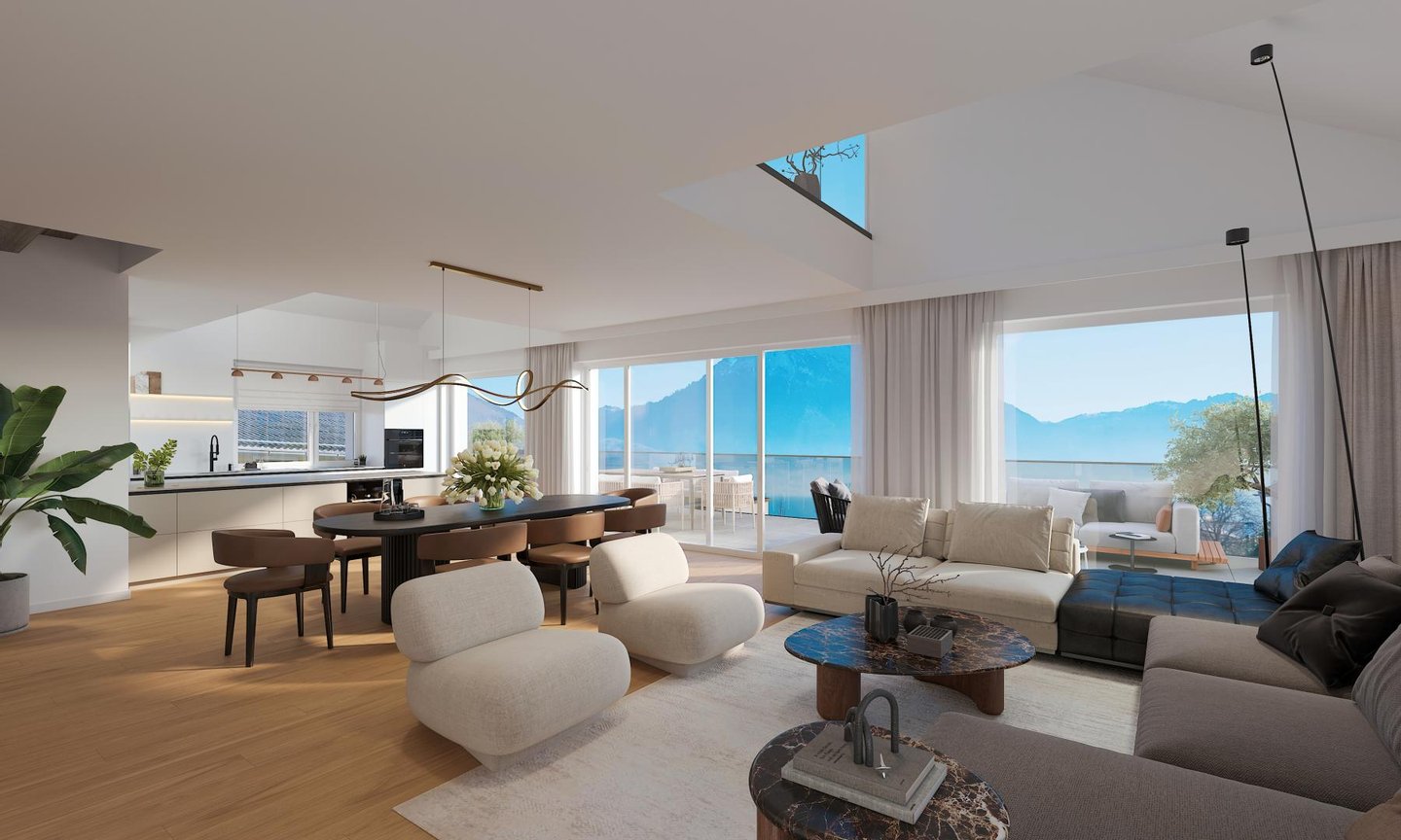 Hochwertige Architektur und durchdachte Raumplanung: Die moderne Architektur und die sorgfältige Bauweise sorgen für ein ansprechendes Wohngefühl, das sowohl ästhetische als auch funktionale Ansprüche erfüllt. Jede der barrierefreien Wohnungen zeichnet sich durch großzügige Raumkonzepte und gehobene Ausstattungsdetails aus. Große Fensterfronten lassen viel Licht in die Wohnungen und bieten herrliche Ausblicke auf den Traunsee und den Traunstein. Loggien, Balkone oder Terrassen laden dazu ein, diese atemberaubende Kulisse in vollen Zügen zu genießen.