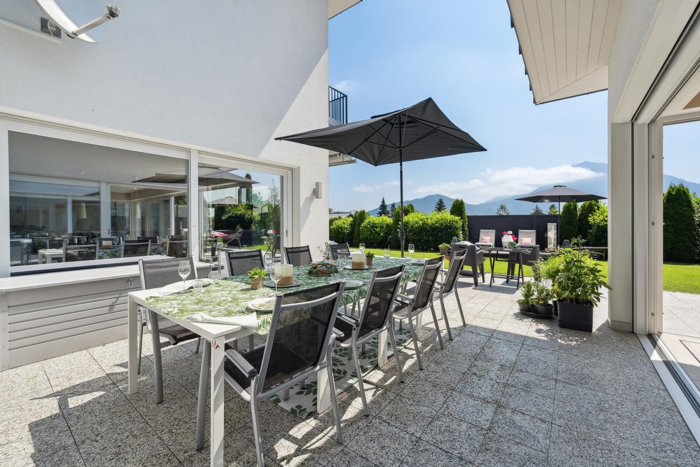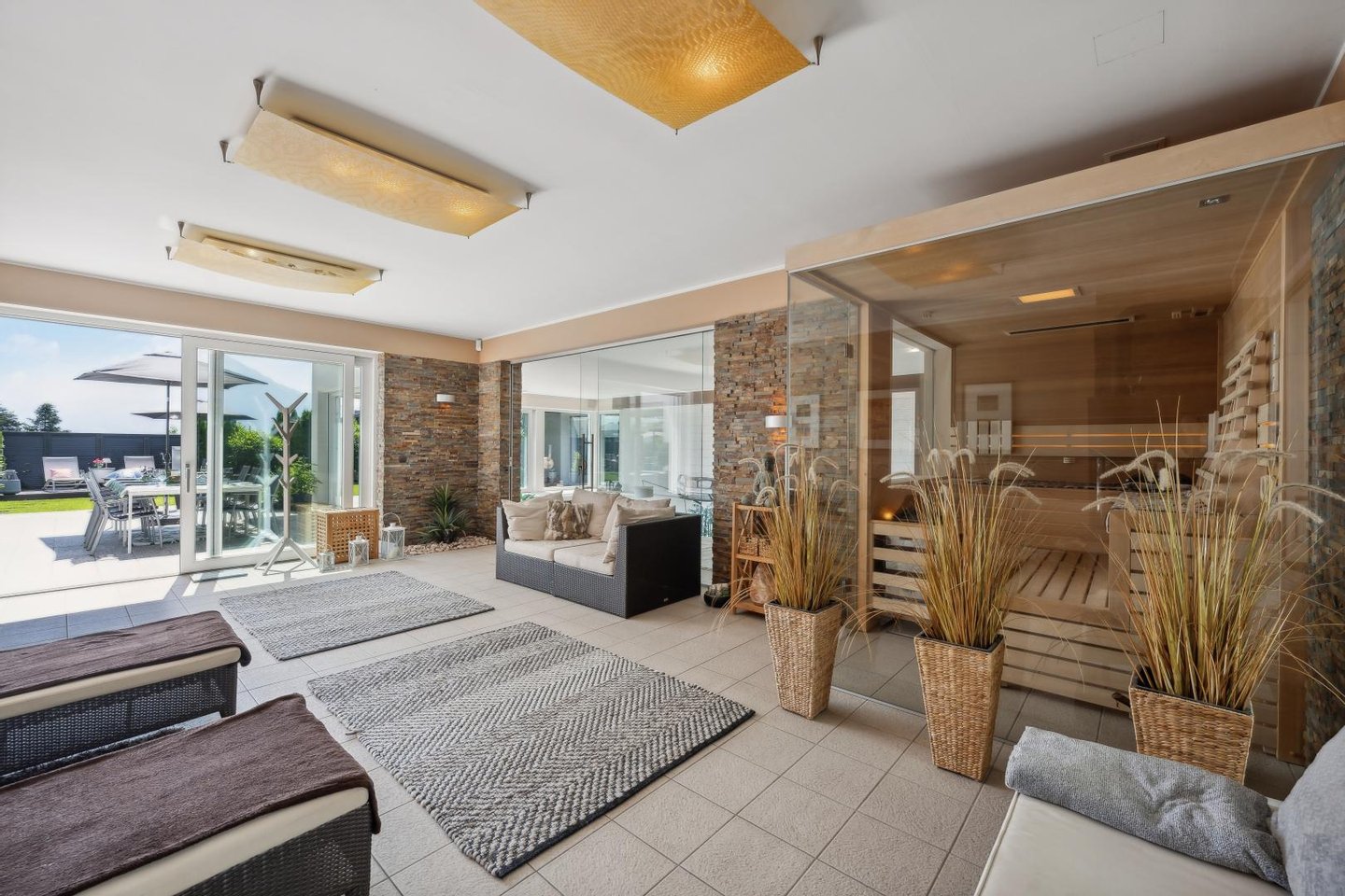 Das 2.608 m² große Grundstück bietet viel Platz für Privatsphäre und Entfaltung. Der weitläufige Außenbereich mit rund 220 m² Terrassenfläche lädt zum Entspannen und Genießen ein, während das Hallenbad ca. 4x8m, der Whirlpool außen, die Sauna und der eigene Sportbereich für maximale Erholung und Freizeitqualität sorgen. Ein besonderer Blickfang ist der stilvolle Weinkeller, der Liebhaber edler Tropfen begeistert.