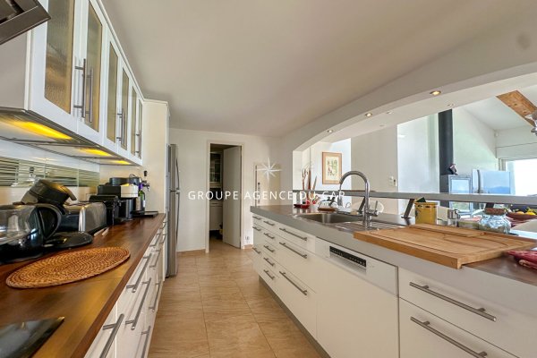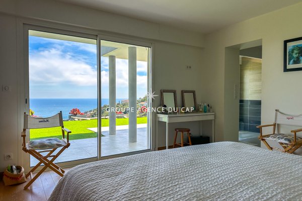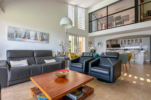 Eine von einem zeitgenössischen Architekten entworfene Villa – Panoramablick auf das Meer in einer ruhigen und abgelegenen Umgebung – diese hervorragende zeitgenössische Villa bietet eine seltene Wohnumgebung, die Eleganz, Komfort und Modernität vereint. Vom Moment des Betretens an sind die raffinierte Architektur, das reichlich natürliche Licht und die großzügigen Wohnräume sofort faszinierend. Alle auf einer Ebene öffnen sich die Wohnbereiche harmonisch zu weitläufigen Terrassen und schaffen eine warme und einladende Atmosphäre. Die perfekt gestaltete Küche bietet direkten Zugang zu einer geschützten Terrasse, ideal für ein Essen im Freien mit Blick auf das Meer. Die Mastersuite, ein wahrer privater Rückzugsort, besteht aus einem Schlafzimmer, einem voll ausgestatteten Badezimmer und einem angrenzenden Büro oder Ankleideraum. Der Schlafbereich umfasst außerdem vier Gästezimmer. Draußen schaffen der Infinity-Pool mit seinem untergetauchten Strandbereich, der Essbereich mit Strohdach und die Entspannungsbereiche eine wahre Zuflucht des Friedens, die das Wohlbefinden fördern. Eine Doppelgarage rundet dieses außergewöhnliche Anwesen mit ihren hochwertigen Oberflächen ab. Eine seltene Gelegenheit, die man nicht verpassen sollte.