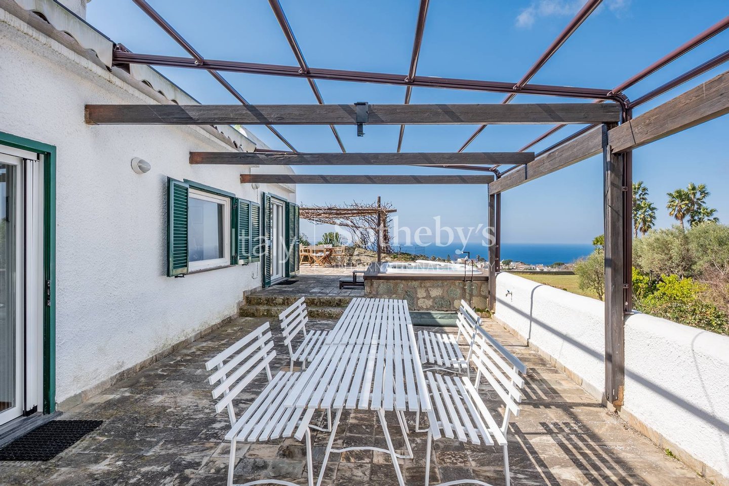 Vom Wohnbereich aus gelangt man auf eine große, gepflasterte Terrasse, die durch eine kleine Loggia im typischen Ischia-Stil ergänzt wird - perfekt für Mahlzeiten im Freien mit spektakulärem Meerblick. Hier befindet sich auch ein entspannender Whirlpool, ideal für erholsame Momente.