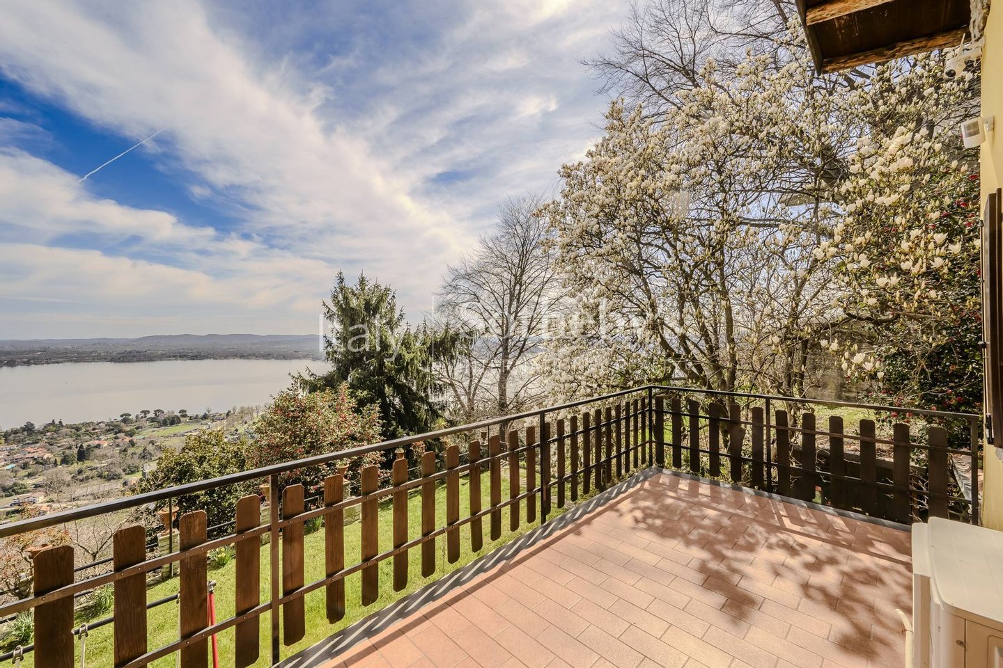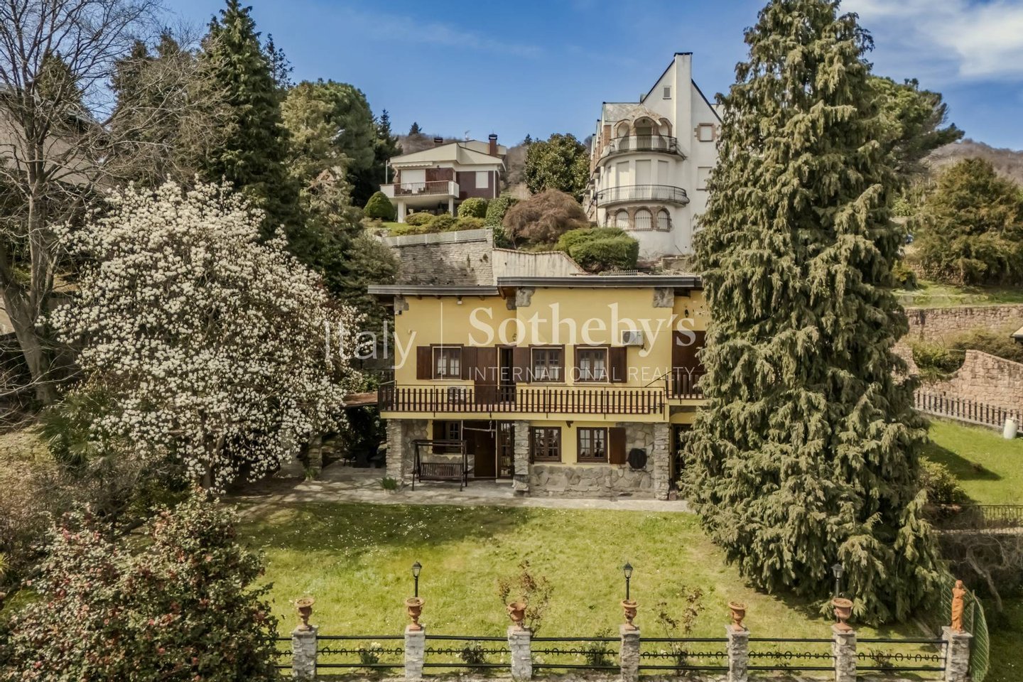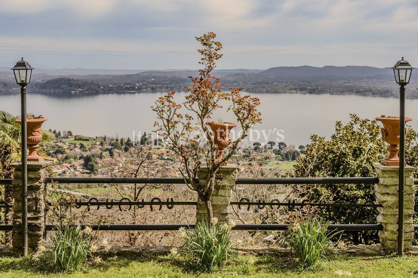 Situated in a dominant position, this wonderful villa offers a spectacular view of the hills of Massino Visconti and the lake, providing unforgettable panoramas in every season. The house is characterized by a terraced Italian